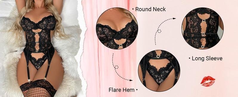 Women’s Lace Mesh Lingerie Set | Garter Belts Teddy Babydoll